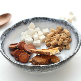 出自《太平惠民和剂局方》,以人参、白术、云苓、炙甘草为组方,是健脾益气的代表方之一。主治脾胃气虚,常化裁运用于慢性胃炎、胃及十二指肠溃疡属脾胃虚弱者。清代以后,对消化性溃疡、胃炎表现为胃脘疼痛的辨证治疗得到更多探索和重视。