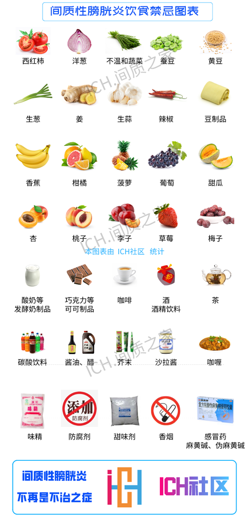 重庆王亮医生团队建议间质膀胱炎病友严格按照饮食图表管理自己的饮食,合理饮食能够在第三代鸡尾酒疗法灌注治疗中起到非常重要的辅助作用,ICH间质之家团队在10余年不懈研究中,总结了“间质膀胱炎饮食禁忌图表”建议大家收藏。
