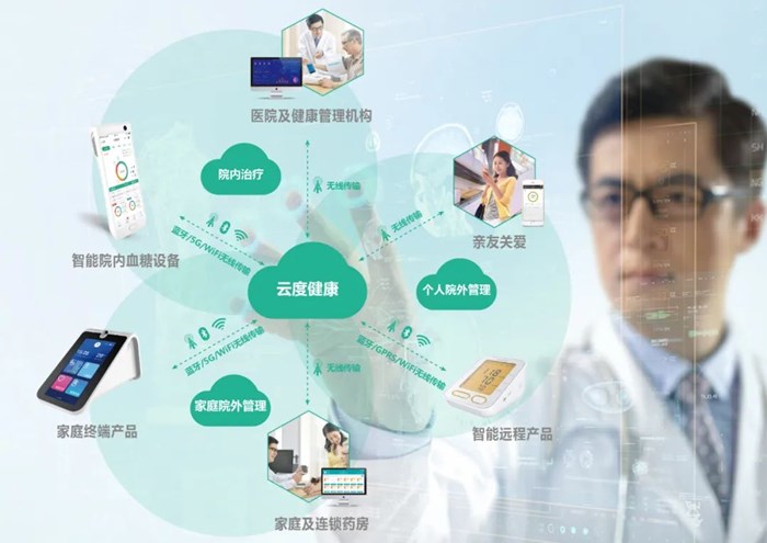 在数字医疗中,信息化与远程医疗占据了重要的比例。早在2010年,作为国内首家获取蓝牙、WiFi、4G/5G等传输资质的慢病设备生产企业,爱奥乐已开始布局慢病管理新生态,结合互联网、物联网、云平台等互联网科技手段,成功开发了云度健康慢病管理平台、智能AI慢病管理设备,为线上医疗提供软硬件结合的整体解决方案,涵盖了院内治疗与院外管理等多种医疗服务场景。