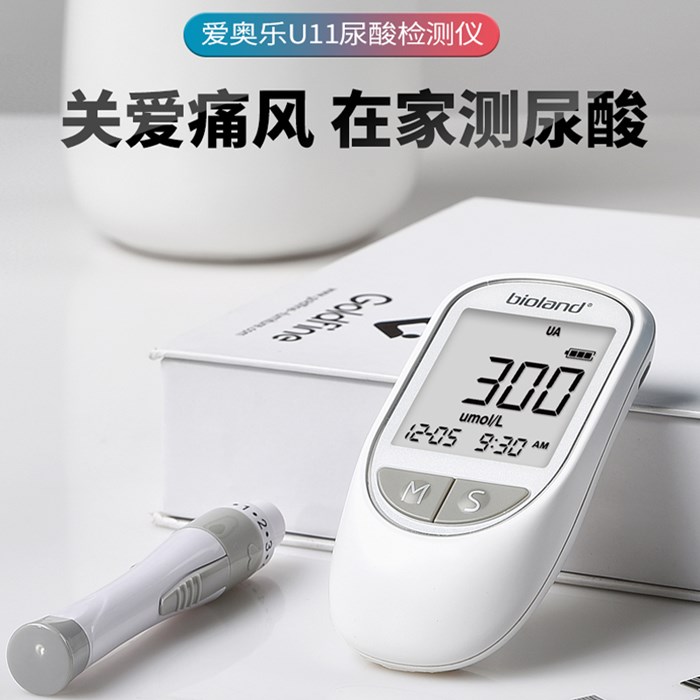 除已深耕二十年的高血压、糖尿病领域,在高尿酸市场,爱奥乐在2022年新上市的U11尿酸仪家用医疗检测设备,采用了运算能力强大快速的高集成芯片,拥有15秒快速检测及超低采血量的特点,具备180组记忆值与大容量可充电锂电池。