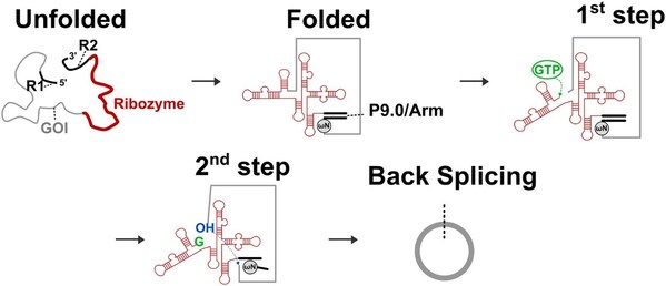 Shaojun Qi,Huiming Wang, Guopeng Liu, Qianshan Qin,Peng Gao,Bo Ying, Efficient circularization of protein-encoding RNAs via a novel cis-splicing system, Nucleic Acids Research, 2024;, gkae711,https://doi.org/10.1093/nar/gkae711