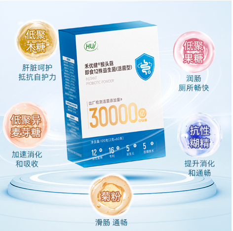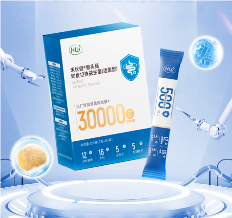 除了强大的益生菌阵容,禾优健还巧妙融合了猴头菇粉、山药粉、纳豆粉等药食同源成分,这些天然食材不仅具有养胃养脾、促进消化的功效,还能进一步提升益生菌的活性与效果。猴头菇粉以其性平味甘、归脾胃经的特性,尤其适合脾胃虚弱的人群;而山药粉则富含多酚类物质,对胃黏膜具有保护作用;纳豆粉则富含膳食纤维和维生素K2,为益生菌提供了丰富的营养环境。