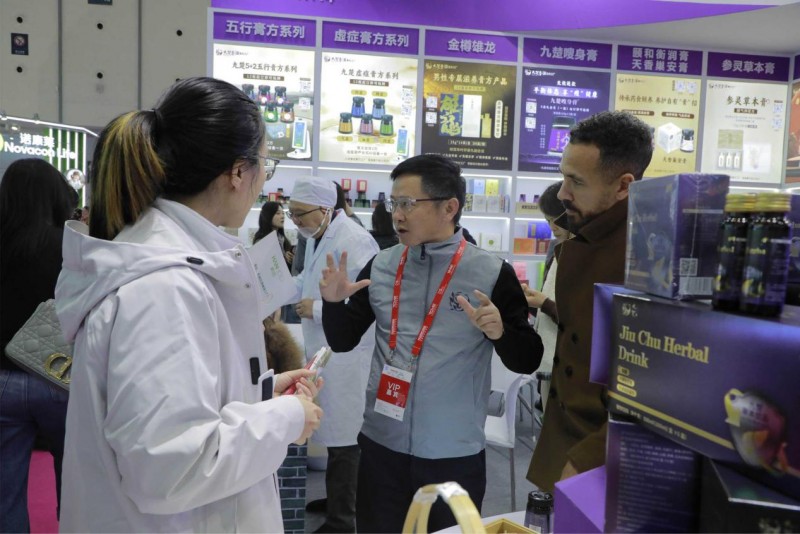 其中,针对女性养颜需求的九楚玉颜膏、针对男性补充耐力的金樽雄龙臻萃膏饮、助力体重管理的九楚嗖身膏、主打增强免疫力和补充精气神的参灵草本膏、净化血液和疏通血管的颐和衡润膏、血糖调理的匠堂哒哒植萃膏饮等爆款单品,凭借清晰的功效定位和良好的市场口碑,成为现场咨询量最高的产品,不少观众在了解配料成分与调理功能后当场下单。
