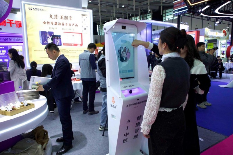 此次在九楚膏滋特装展位还有一大亮点,即引进医葫芦中医AI立式一体机,增强互动性。所有走进九楚膏滋展位的参展者,都可以免费体验中医AI监测,再根据监测报告选择适合自己的养生方式和对应的膏方产品。