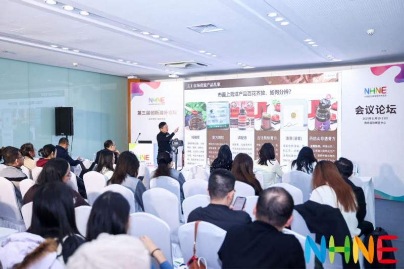 除了产品与体验,九楚膏滋还为展会带来了一场极具价值的专业分享。11月19日下午,九楚膏滋膏方工厂创始人&产品经理李英卫先生,受邀在本次大会的第三届创新滋补论坛上发表《药食同源膏方的开发与应用场景》主题演讲。