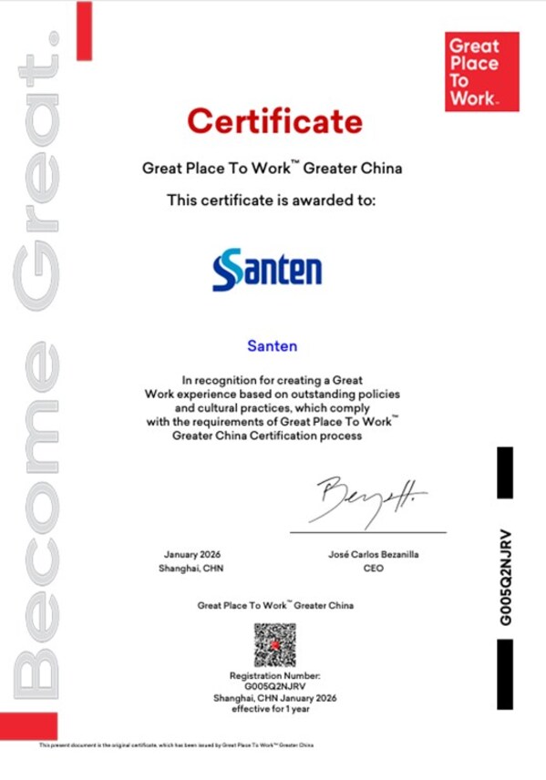 近日,全球眼科领域的领导企业参天公司在包括大中华区在内的全球21个区域荣获Great Place To Work™(卓越职场™)认证。