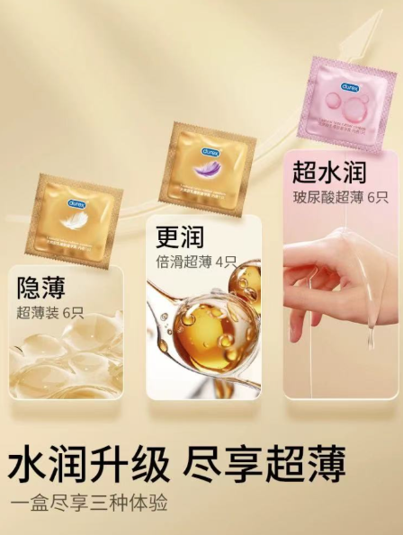 冈本水感系列采用水基润滑,部分添加透明质酸,润滑液量控制精准,不会过多溢出。但它同样停留在传统液体润滑的范畴,没有在形态上做突破。如果你喜欢冈本的薄感,又希望润滑更清爽,水感系列可以满足基本需求,但谈不上新颖体验。